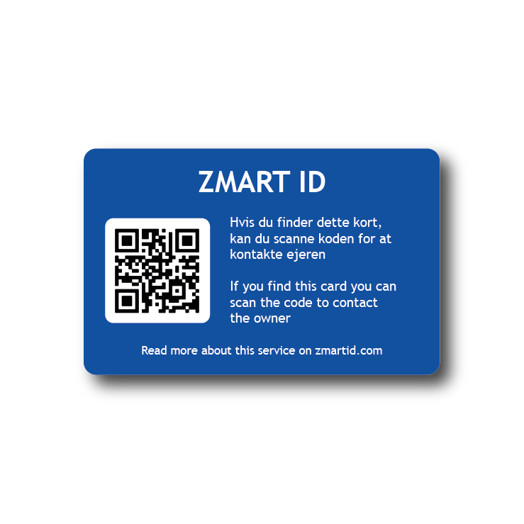 QR-kode i kreditkortstørrelse. Lavet i tykt papir (350g kvalitet). Tekst på dansk og engelsk.