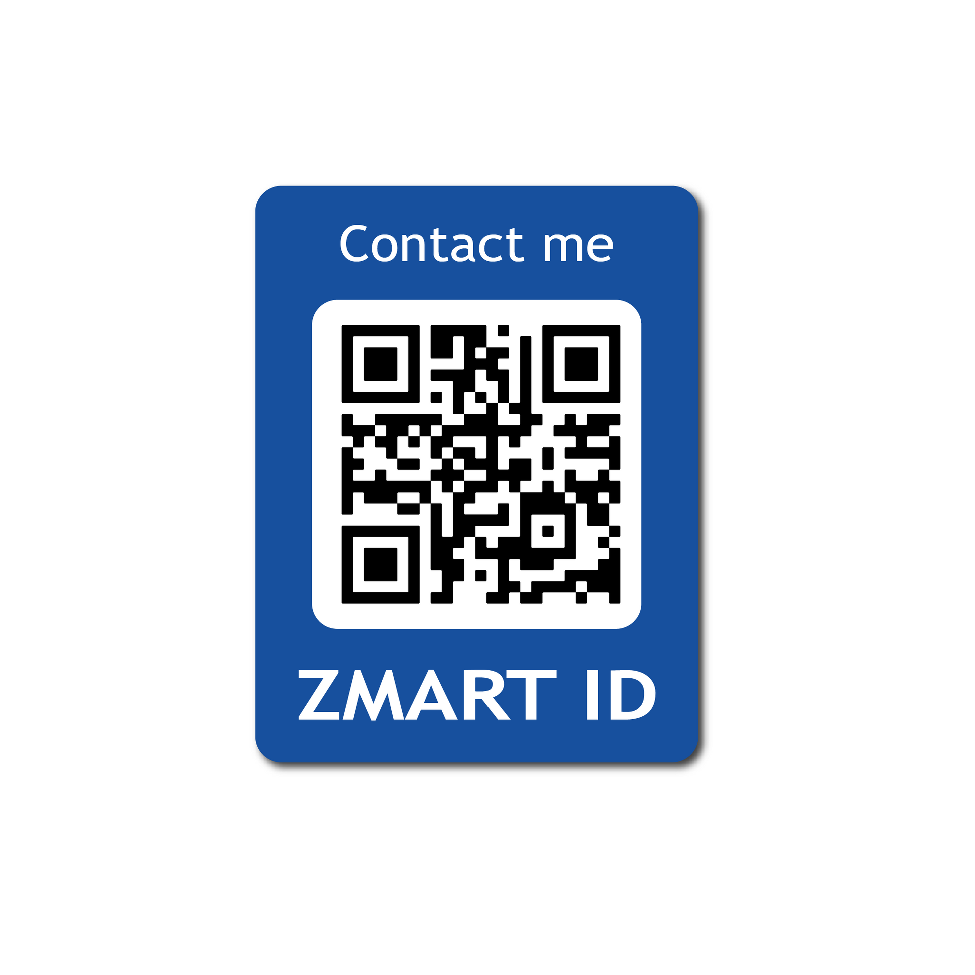 Klistermærke til montering indvendigt på bilruder eller andre vinduer. Blå baggrund og hvid tekst med unik QR-kode. Fås pt. kun i én størrelse (50 x 65 mm)